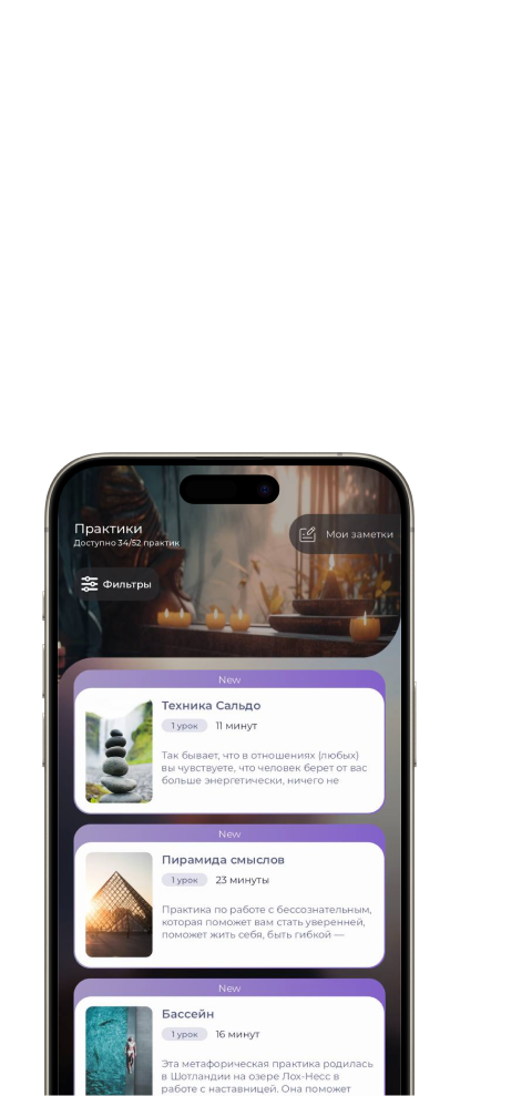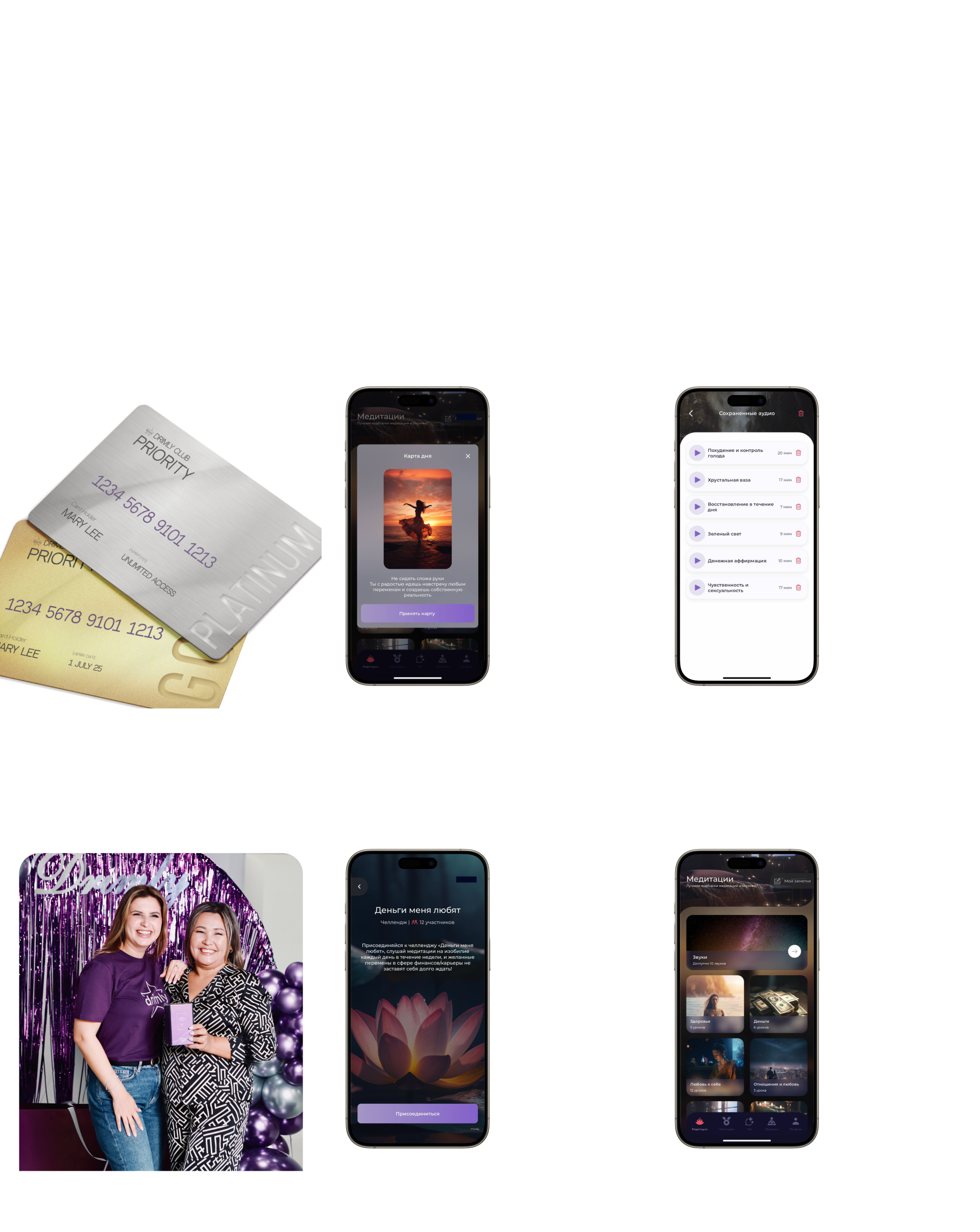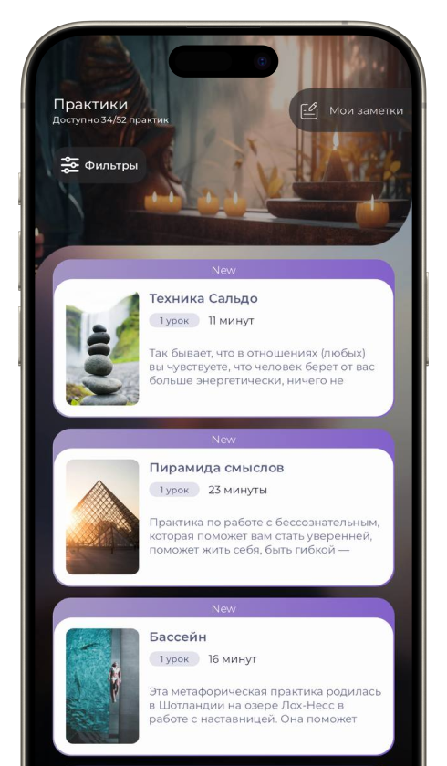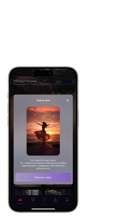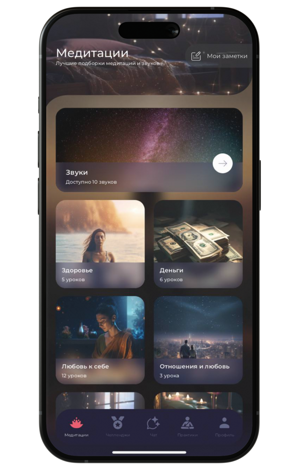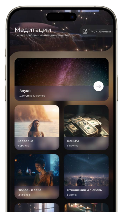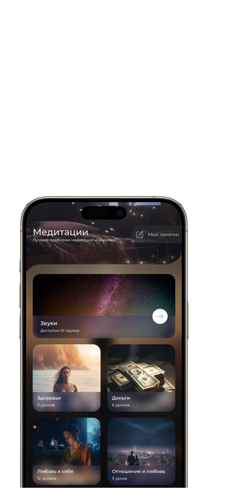 Нет, у вас будет доступ не только к медитациям, но и к психологическим практикам Елены Друма (в том числе, к разделу «Квантовая психология»), которые дают моментальный результат и положительные перемены в жизни. Также вам будут доступны записи закрытых живых эфиров и медитативные, расслабляющие звуки для снятия стресса.