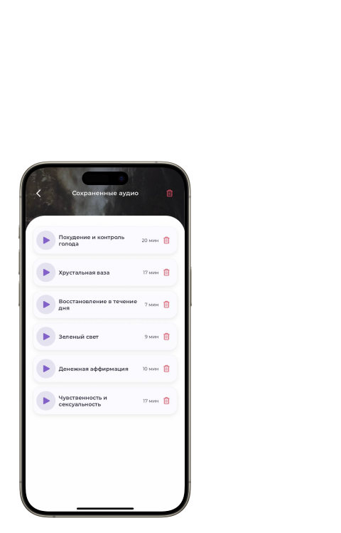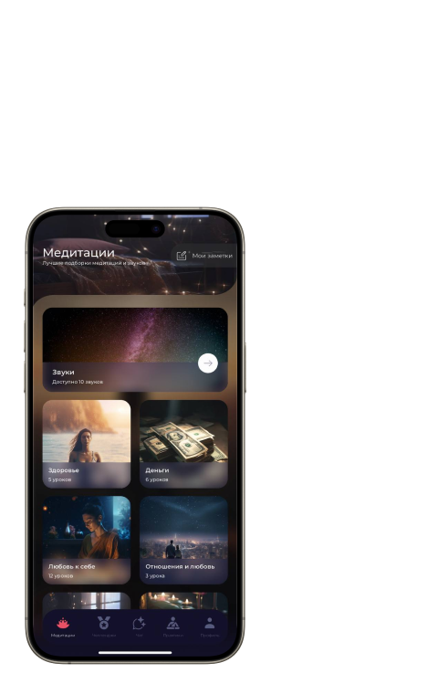 Исходя из своего наиболее актуального запроса. Прислушайтесь к себе, поймите, какая из сфер жизни требует проработки в данный момент времени, и выберите любую из медитаций нужного вам блока: здоровье, деньги, любовь к себе, отношения, сон, сексуальность.