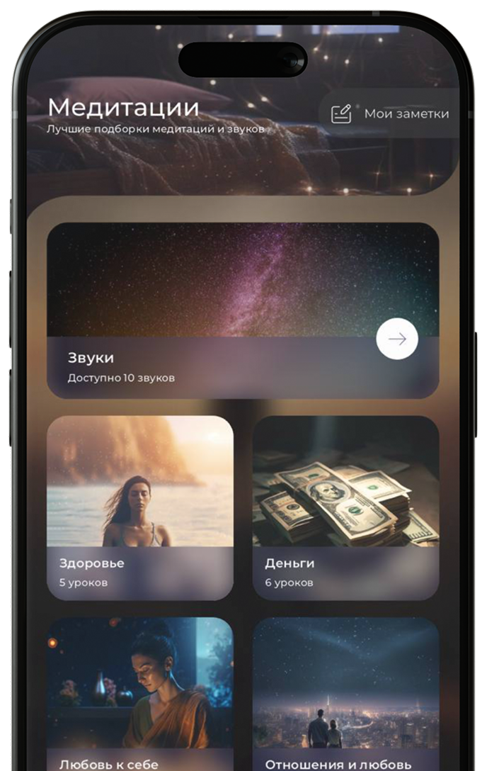 Исходя из своего наиболее актуального запроса. Прислушайтесь к себе, поймите, какая из сфер жизни требует проработки в данный момент времени, и выберите любую из медитаций нужного вам блока: здоровье, деньги, любовь к себе, отношения, сон, сексуальность.