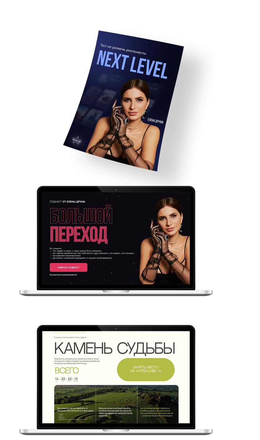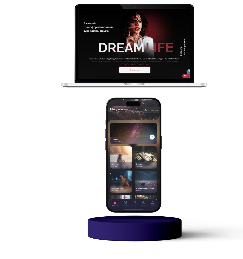 — теоретический блок, где вы узнаете о духовных путешествиях Елены Друма, ее осознаниях, том, как это отразится на всех клиентах Drimly, плюс увидите преимущества соединения духовного и материального, когда внешние факторы (люди, деньги, события, наличие или отсутствие отношений и т.д.) на вас никак не влияют